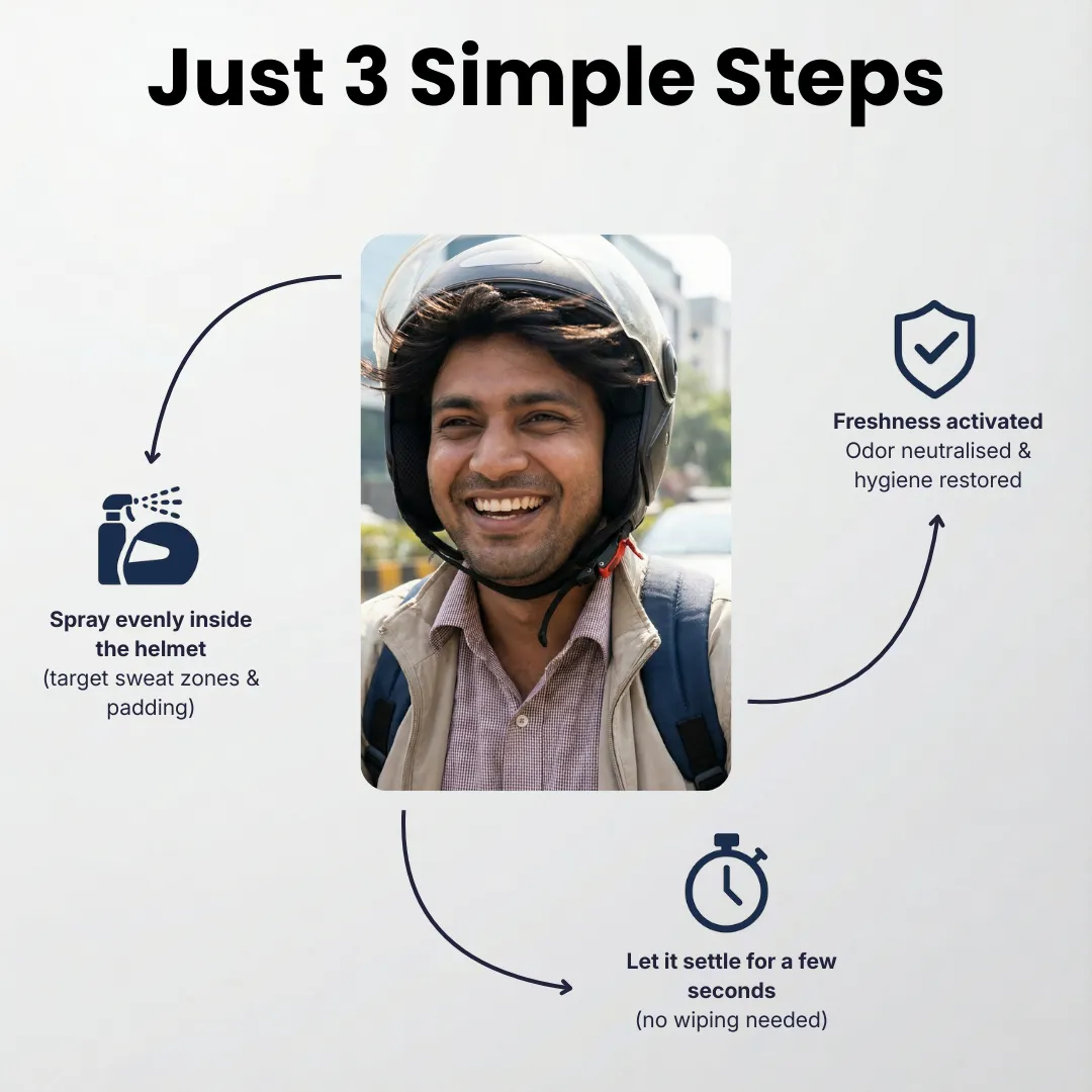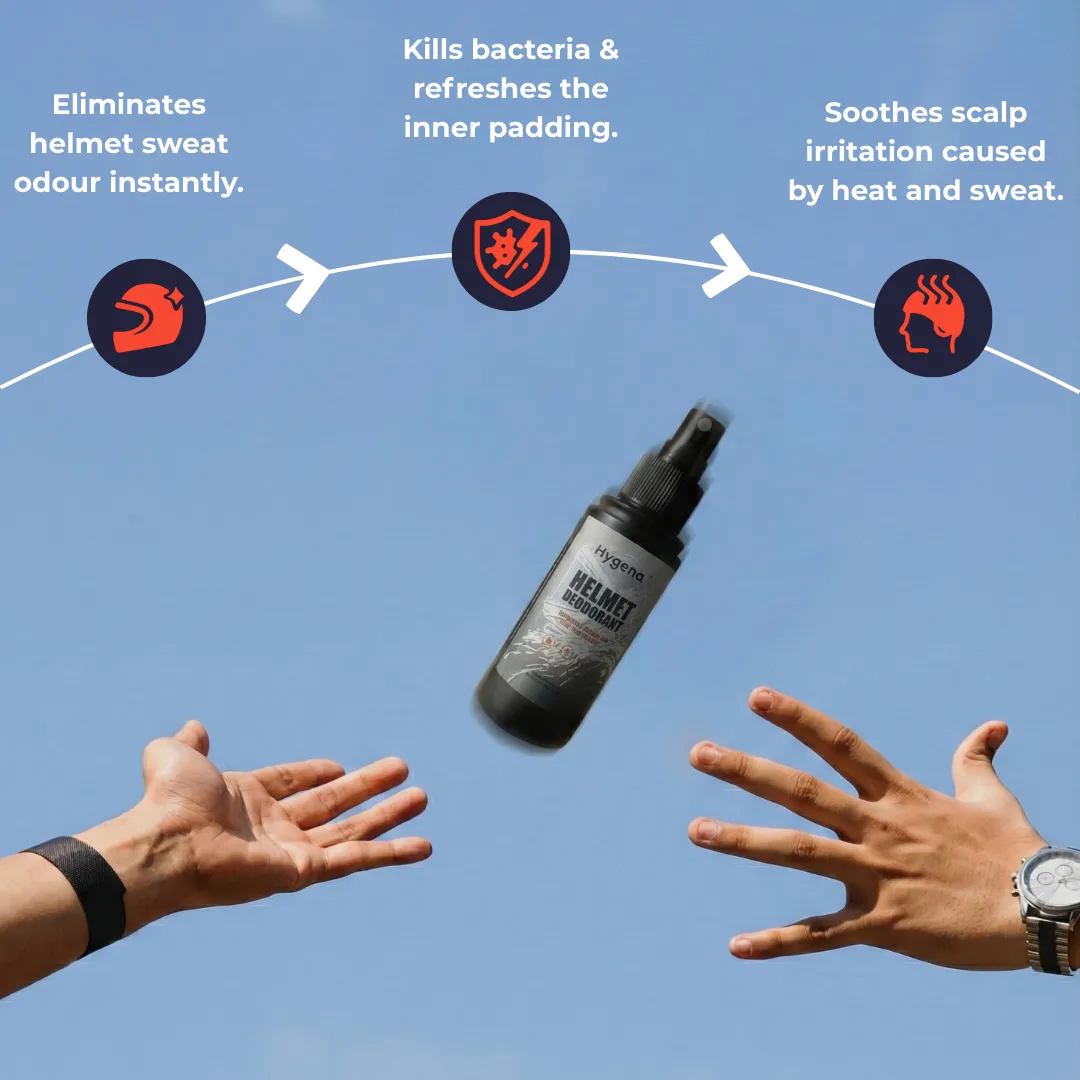 India's first helmet deodorant built for sweat, bacteria, and daily rides.