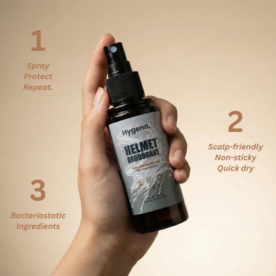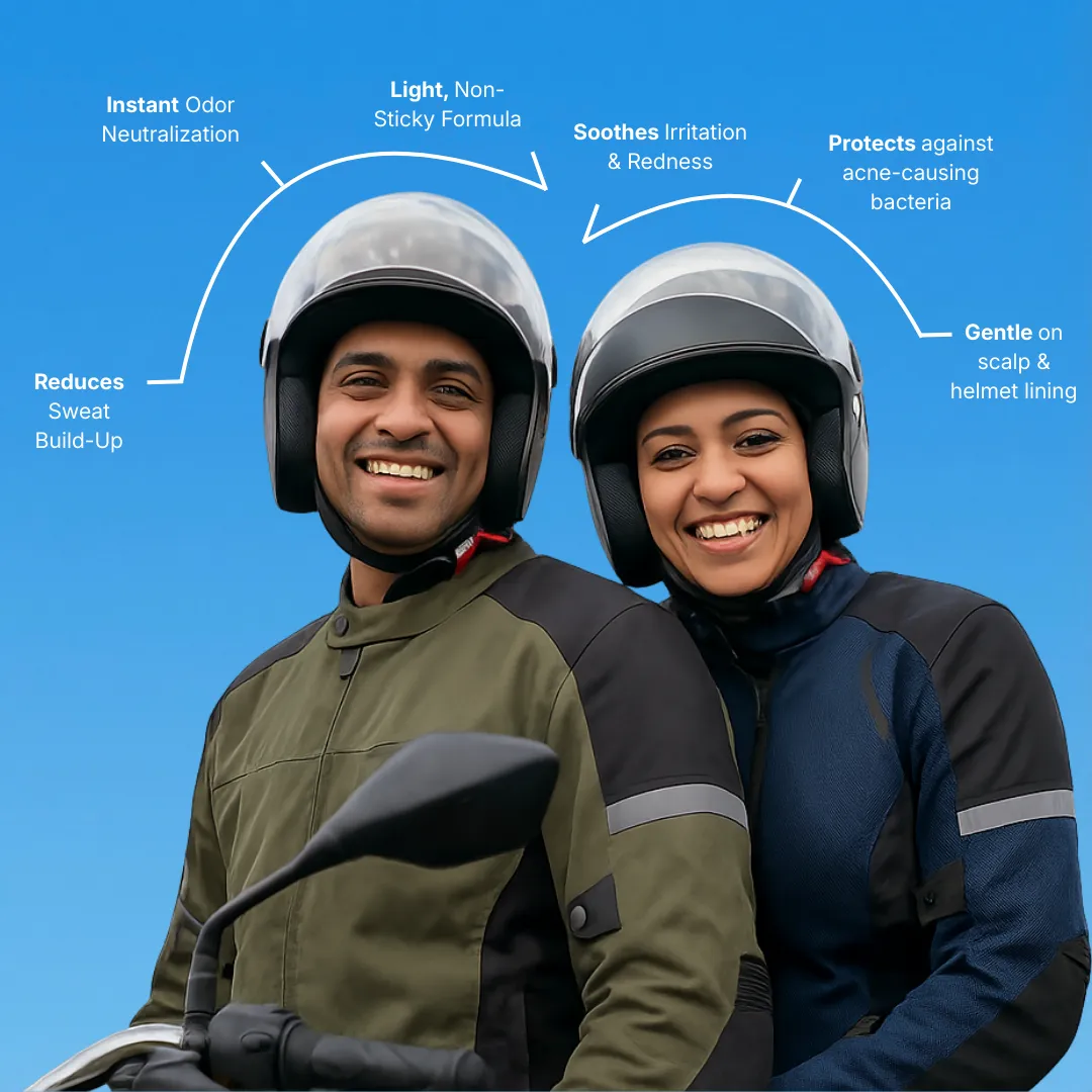 India's first helmet deodorant built for sweat, bacteria, and daily rides.